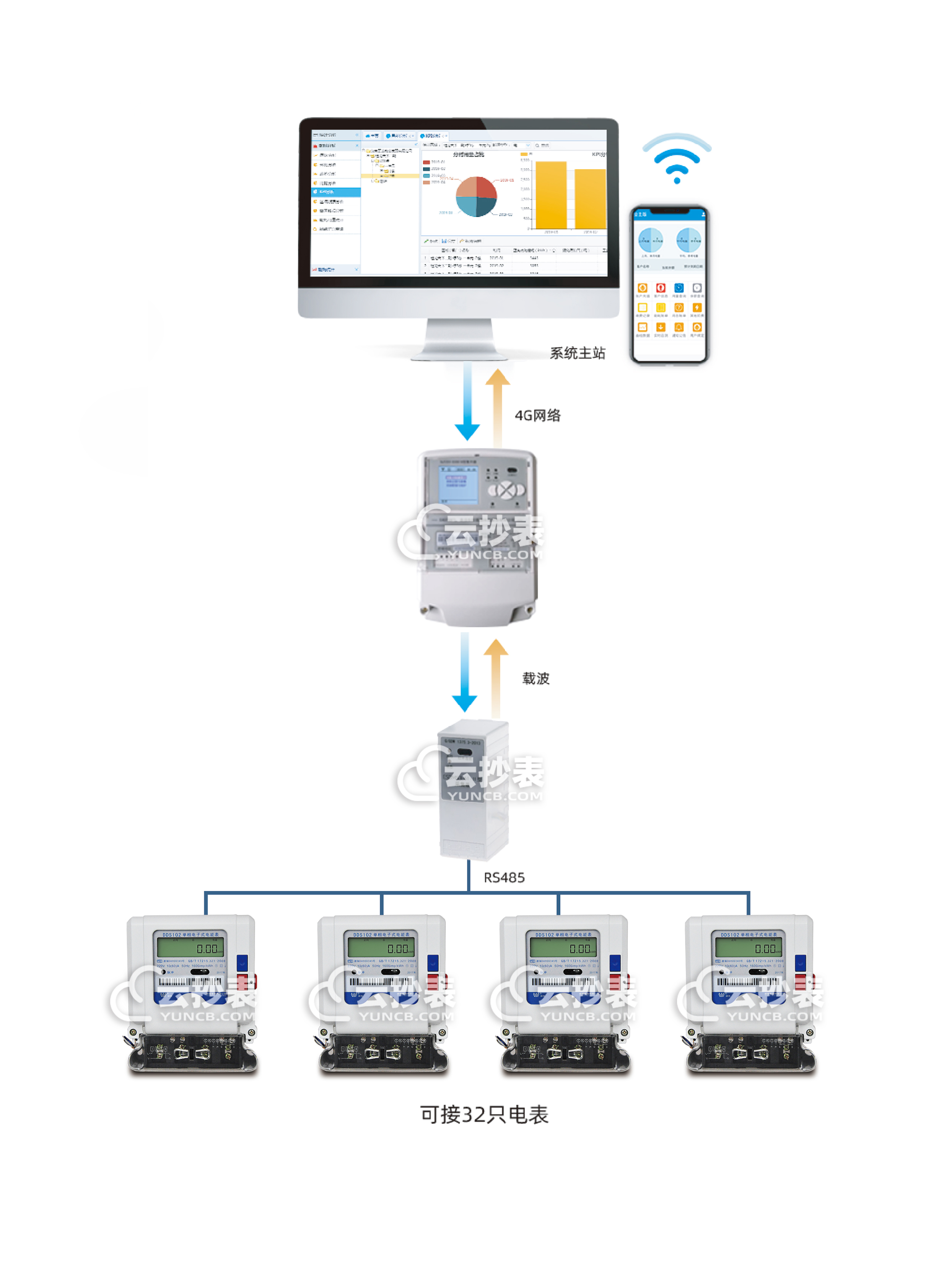 項目方案:經(jīng)過現(xiàn)場勘察,每層一個電表箱,層級集中式抄表,使用RS485有線抄表是最節(jié)省硬件成本的,由于數(shù)量比較多,如果直接搭配II型集中器,價格成本會比較貴,采用RS485轉(zhuǎn)載波抄表方案成本會節(jié)約很多,采集器搭配I型集中器。